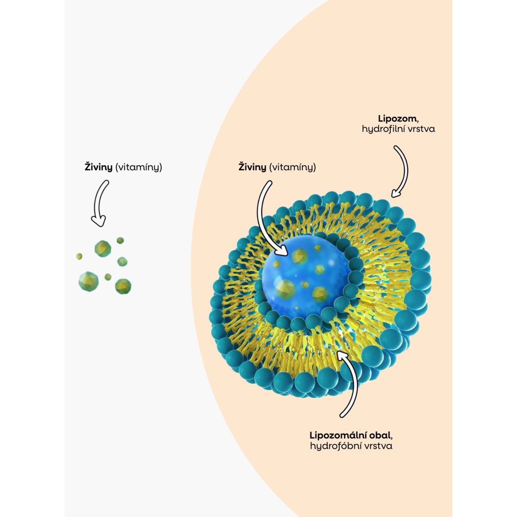 - ✅ Přírodní složení obalu – lipozomy jsou vyráběny ze slunečnicového lecitinu (non-GMO).