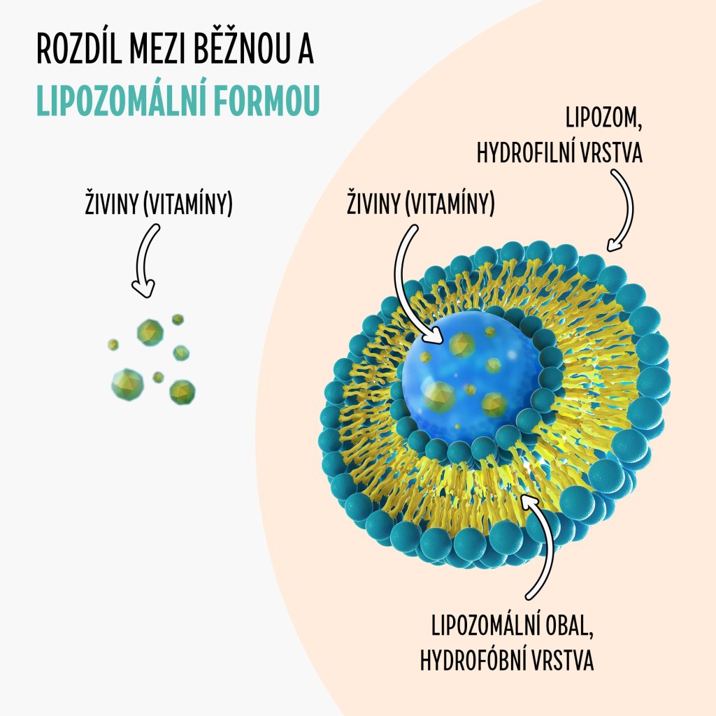 Lipozomální technologie představuje nejmodernější způsob, jak dopravit vitamíny a minerály přímo do buněk. Lipozomy jsou tvořeny přírodními fosfolipidy – stejnými stavebními kameny, jaké tvoří naše buněčné membrány. Díky tomu dokáží snadno pronikat stěnou buněk tzv. pasivním transportem, aniž by tělo muselo vynakládat energii navíc.